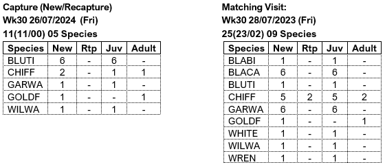 very few migrants detected. The bulk of the catch juvenile Blue Tit.